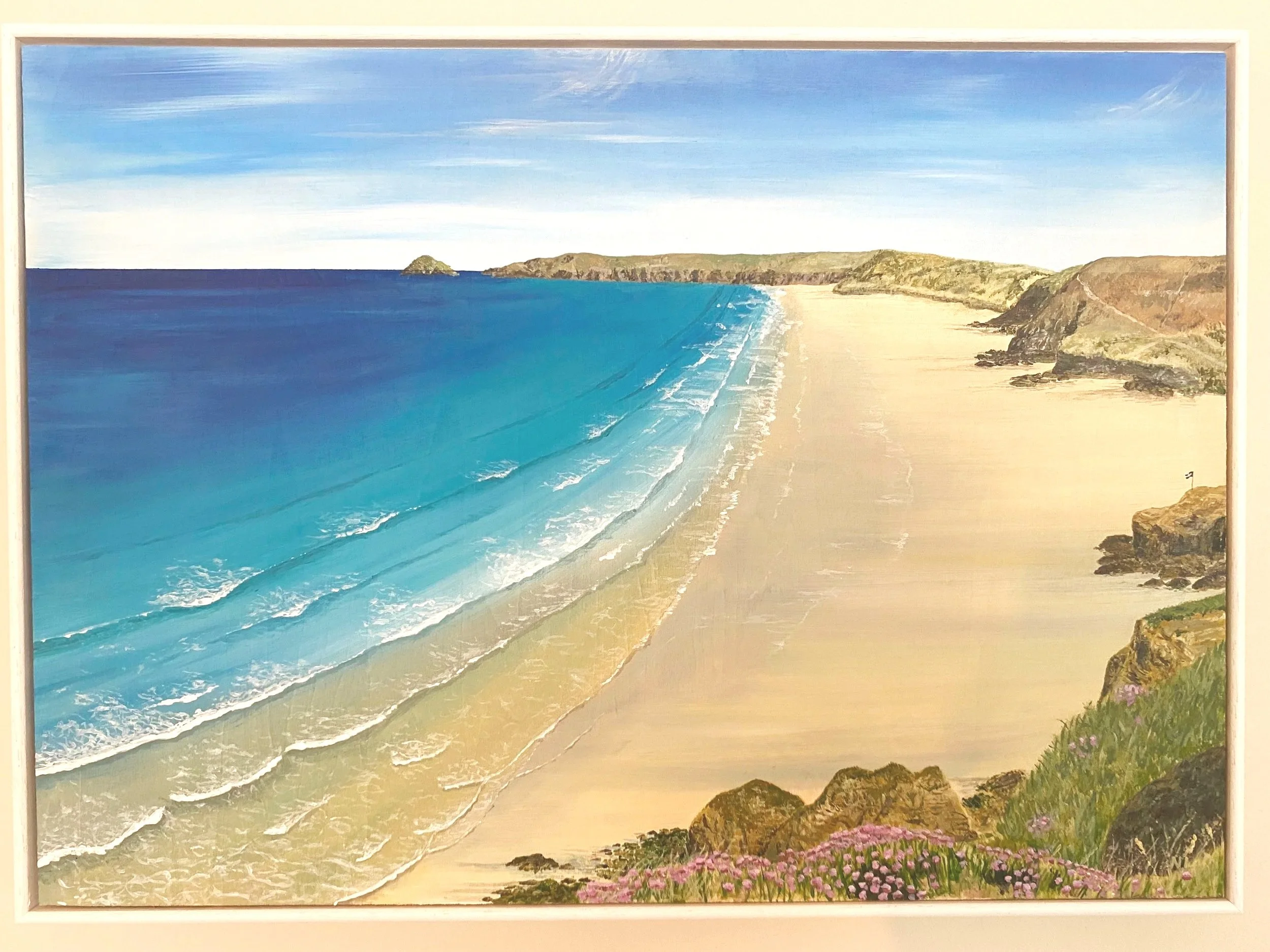 Please select individual paintings to view the full seascape and the material with listed dimensions and framing detail.